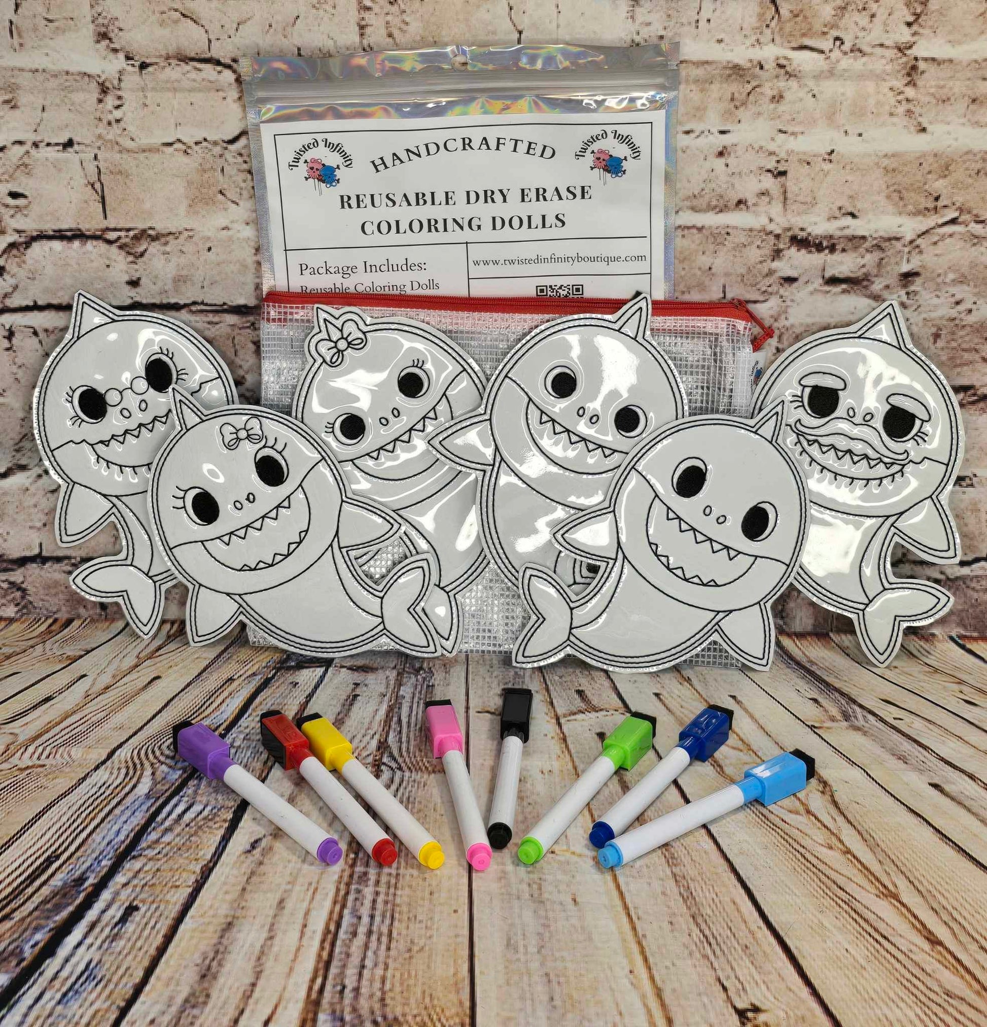 Bring your child's imagination to life with our Dry Erase Coloring Dolls — a reusable, mess-free way to inspire creativity, imagination and hands-on play! Each doll is embroidered on high-quality white marine vinyl and clear vinyl, designed for durability and charm. The soft felt backing ensures furniture and surfaces stay protected during play.